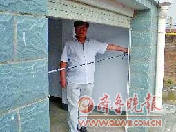 用卷尺对张先生家的车库进行测量,宽度为2.04米 记者 曹宏源 摄