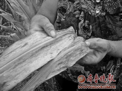 “以前种的是棉花,收的时候棉花桃都是黑的,所以去年就改种玉米了。”村民赵庆婷说,去年也出现过这种情况,收的玉米槌都只有巴掌大小,可今年却面临着要绝产的危险。“不可能是种子的问题,我们种的是一个品种,人家那儿就没事。”