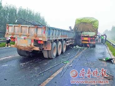 本报8月25日讯(记者 徐乐静 通讯员 于皓 李光磊) 25日凌晨3时许,济聊高速公路聊城方向19K+900m处发生了一起车祸,两货车追尾,后面货车司机当场死亡,车上另外一人腿部受伤。接到报警后,济聊高速齐河管理处到现场紧急处理,并未影响道路通行。