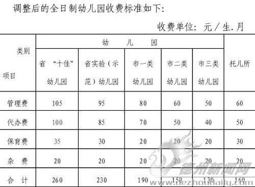 王瑞 来源:德州新闻网为促进我市学前教育事业健康发展,为幼儿提供良好的生活学习环境,近日,市物价局、财政局、教育局联合发出通知,调整我市幼儿园(含托儿所)收费标准。