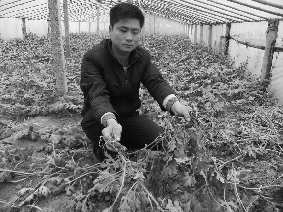 5月10日上午,记者来到苍山县卞庄镇道沟崖村,村民张景民正蹲在自家西瓜大棚前,棚里的很多西瓜秧都被扯断或连根拔起。