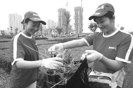 ▲5月19日上午,安利创城志愿者联盟活动正式启动,当日,志愿者们来到滨河景区开展了捡拾垃圾活动。 记记者 廖杰 摄