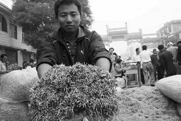 在流峪镇的集市上,一位销售金银花的种殖户给记者算了一笔账,没开花前,5公斤鲜金银花可以晒1公斤干金银花,这样算起来,每公斤干金银花光开给别人的工钱就是50元,如果开花了,则需要6-7公斤鲜花晒1公斤干花,这样,工钱就到了60-70元,再加上吃住花销,以目前的行情,1公斤干金银花,超过1/3的收入已经提前支付给了采花者。