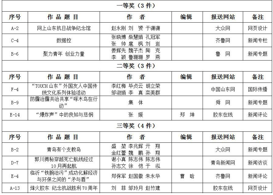 附:2015年度山东新闻奖网络新闻作品获奖目录
