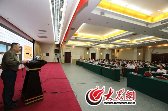 图为山东省教科院张可柱所长做专题报告