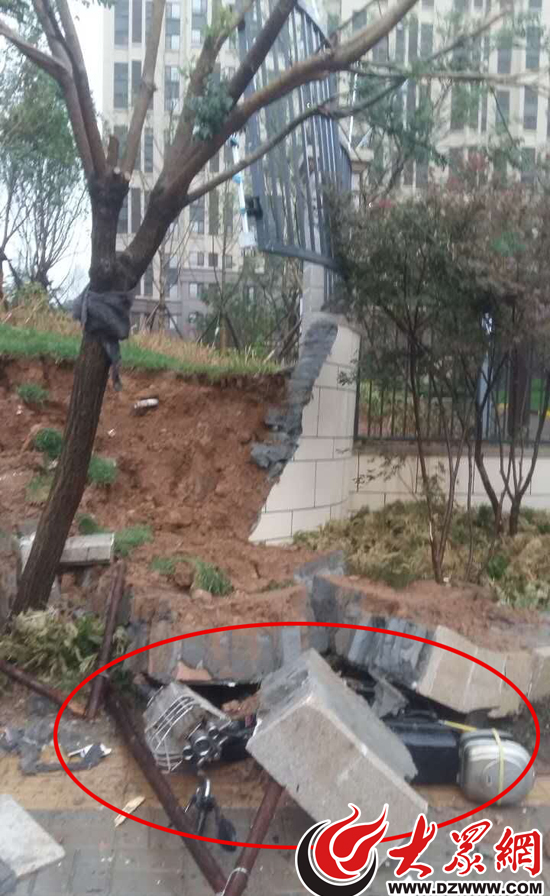 大众网济南6月14日讯(见习记者 蔡纪香)今天上午,家住济南市二环南路一新建小区的刘先生爆料称,昨天一场降雨过后,小区竟有一段围墙都被雨水冲塌了。刘先生说,该小区刚刚交房不到一个月,这么点雨儿就把围墙给冲塌了,小区的建筑质量会不会有问题。对此,该小区开发商的工作人员回应称,昨天下雨后地面产生积水,才导致了围墙的倒塌,将尽快维修。