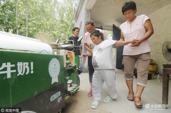 袁凤丽从小到大,受到不少人好心人的照顾。“我走路经常摔跤,一摔跤就会骨折,所以在上学时上厕所或者外出,老师和同学们都是轮流背我。”袁凤丽说,是老师和同学们的热心帮助,才让她坚持读完了小学。但由于初中要到别的村子去上,离家远,家中又无人接送,袁凤丽无奈只能辍学。