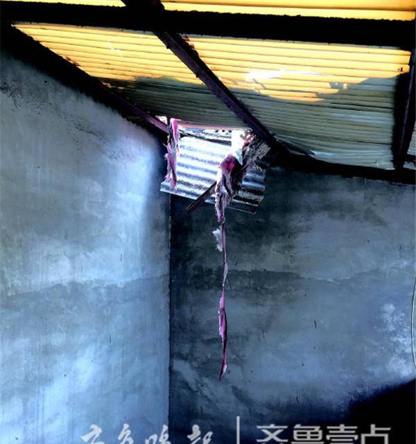 小雅穿透棚顶落到楼梯上。齐鲁晚报·齐鲁壹点 记者 郑帅 摄