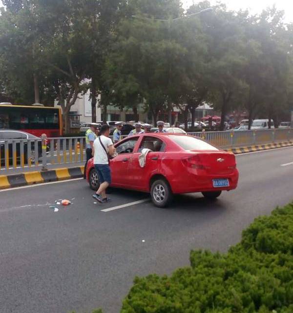 据现场目击者袁先生介绍,当时红色轿车是自西向东正常行驶,而白色轿车本来在辅道上行驶,但行至中心医院门口的过街天桥附近时,白色轿车突然变道导致撞上了行驶中的红色轿车,将红色轿车撞翻。
