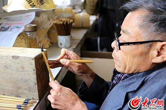 师傅展示毛笔制作雕刻技艺