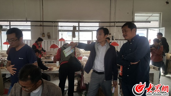 山东省网媒集团办公室副主任张峰听取当地介绍人员讲解