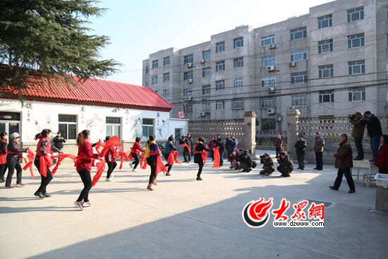 正式造访金庄村已经是下午一点半了,接待我们的是金庄村的村长金树桢,在他的带领下我们到达了本次活动的主要地点——金庄村文体活动中心。据金村长介绍,全村现有475户共计约1500人口,同样存在青壮年外出务工的原因,所以村里现在以妇孺为主。我们担心这里的年味氛围不够浓厚,本以为可能和之前的村一样,然而当我们到达文体活动中心时,展现的却是另外一幅场面:干净整洁的水泥路面上正站着整齐的4排队伍练习舞蹈,配上最后排两个大音响的伴奏,现场显得热闹非凡。看到摄影师们一行人的到来,村民们反而更加充满激情,跳舞的步伐似乎变得轻快了许多。跟随金村长的步伐拍客们来到了活动中心的音乐教室,这里不仅有二胡、钢琴等古典乐器,还有电子琴、电吉他等现代流行乐器,为方便年轻一代音乐爱好者练习、表演。隔壁的房间摆放着投影仪和大屏幕,为方便青年男女观看教育影片、学习舞蹈动作。在文化中心甚至还有小型图书室,里面陈列着音乐、书法、生活百科等各类书籍。拍客们感叹这里文化韵味之浓厚,纷纷拿起相机记录下这些珍贵的时刻。