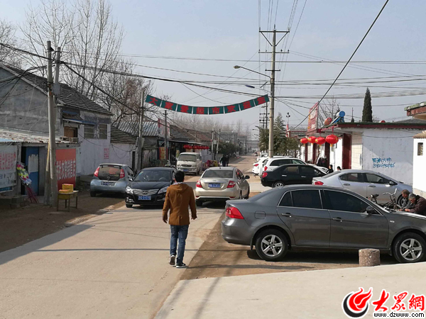 春节期间,临沂市临沭县石门镇大官庄村,回家过年和串门的车辆停满了。