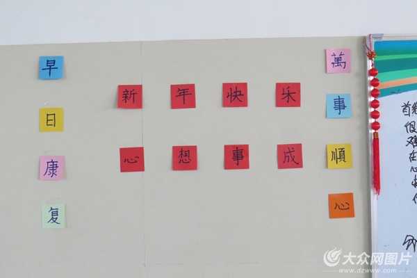 为让住院患者感受到“年”的气息,医护人员对病房餐厅进行了简单装饰,把患者写下的新年愿望贴到“许愿墙”上。护士们和患者们一起做手工、下跳棋、玩扑克。