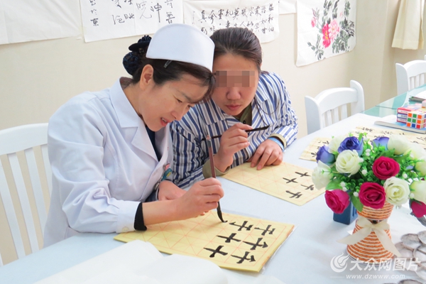 做完手工之后,部分患者又来到棋牌书画治疗室,开始练字、画画。李清华说:“做手工、练习书画,可以提高患者的认知功能和社交技能,为患者社会功能的恢复,早日回归社会奠定基础。”