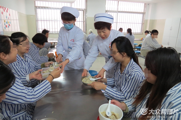 晚餐,护士们为每位患者分发了饺子,并和患者聊起了家长里短。