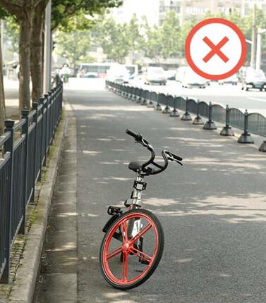 摩拜单车正确的停放姿势:路边白线,停车圈或单车聚集区域
