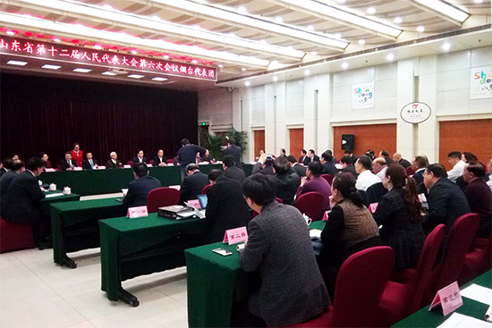 山东省十二届人大六次会议烟台代表团进行分组审议。