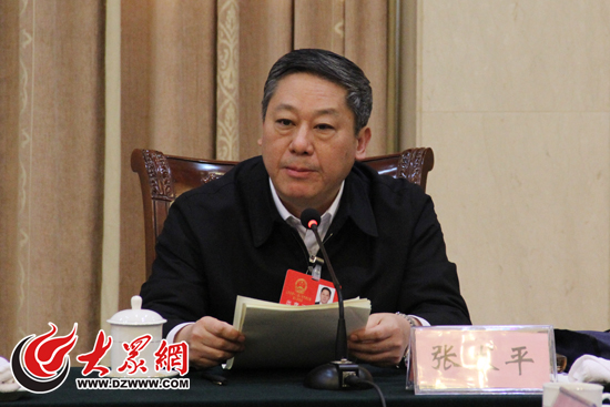 山东省人大代表、临沂市长张术平在临沂团分组审议时发言。