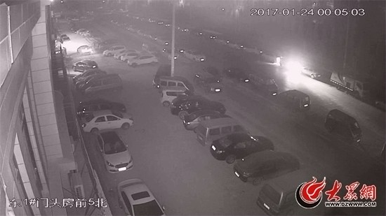 监控录像显示,案发地大量私家车停放在路边,路灯灯光较暗。