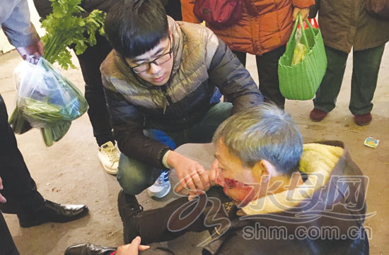 3月3日上午,一名老人在市区文化路市场突发急病,晕倒在地。市场上买菜的群众拨打了120急救电话。一名过路年轻小伙子凭借自己掌握的简单急救常识,把众人不敢扶的老人扶起坐好,待急救人员到达后默然离开。