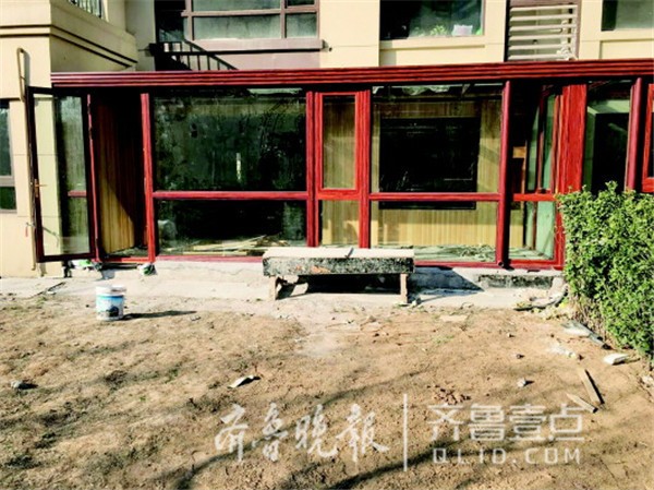 有一楼的业主装修时将绿地全部破坏,封起了阳光房。齐鲁晚报·齐鲁壹点记者刘雅菲 摄