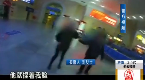 济南铁路局青岛公安处青岛站公安派出所民警李铭:“故意的摸工作人员的脸,而且用手肆意的在脸上掐捏。”