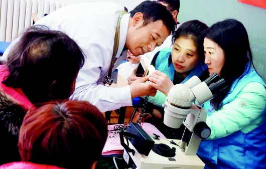 青岛经济职校珠宝专业的学生和老师在学雷锋日开展义工活动,为市民鉴宝。