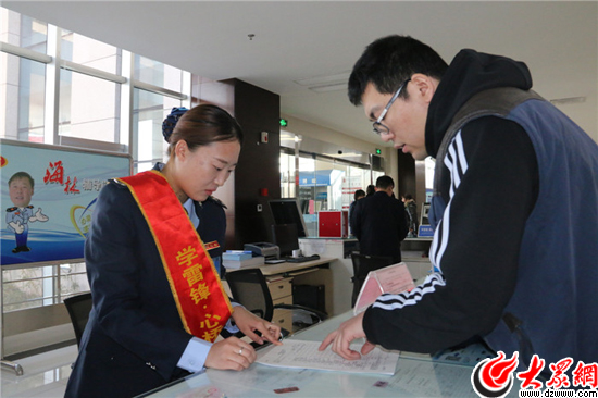 大众网滨州3月5日讯(记者 王君彩 王亚明 通讯员 梅振华)“太快了,一个业务最长不过15分钟就办完。服务都是一站式。”3月5日雷锋日,大众网记者前往学雷锋示范点滨州市市区国家税务局办税服务厅采访,前来办理业务的市民宋莉毫不吝惜对服务厅的夸赞。