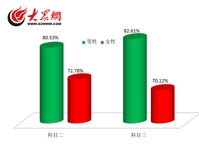 济南市车管所公布的数据显示,女性考生的驾考科目二、三合格率明显低于男性
