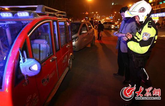 昨晚,济南交警市中大队在火车站附近展开黑摩的、红三轮专项整治。