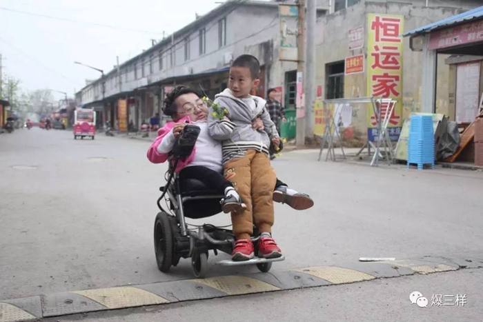 在幼儿园门口,见到妈妈,虎子开心地奔跑过来。回去的路上,像其他妈妈用车子带着孩子一样,宋冰心用轮椅载着儿子回家。只见,她紧紧拽着虎子的身子,侧头看着路,小心地控制着轮椅方向。