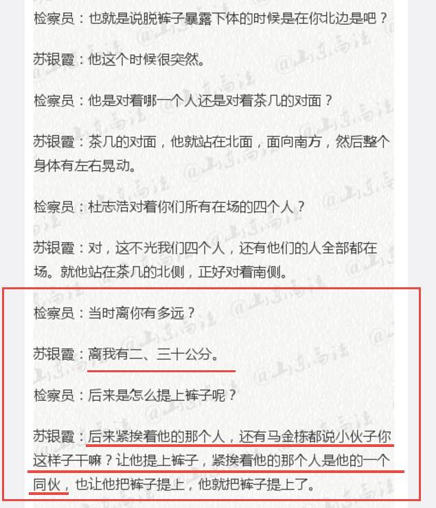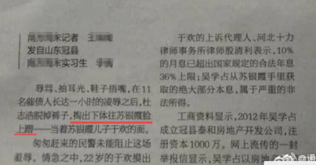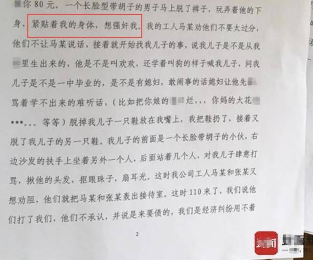 而且苏银霞还否认了自己之前对某家媒体抛出的对方要“强奸”她的说法,表示那个脱裤子的讨债者很快就被他自己的同伙制止了。