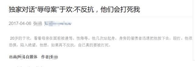当然,很多看过今年3月那篇“刺死辱母者”的报道,以及后续媒体报道的人可能会问了:于欢怎么可能没有遭到生命威胁?她母亲不是被“阴茎蹭脸”了吗?而且她母亲还说对方要“强奸”她,于欢也说自己被围殴,还说如果自己不反抗对方会打死他,这怎么可能只是“轻微”的暴力侵害呢?