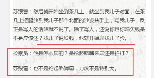 比如,当初最激怒大家的那个“阴茎蹭脸”的说法,就在法庭上被于欢和母亲苏银霞自己否认了,表示讨债者是脱裤子露出了下体,但没有“蹭脸”的情节。