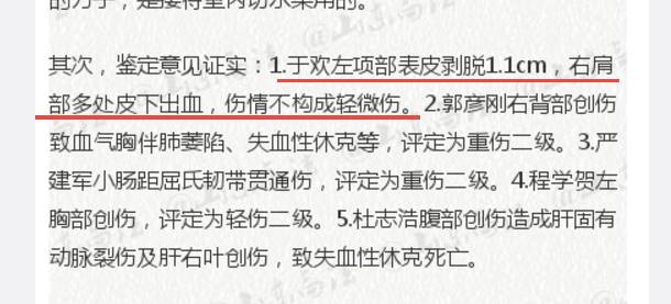 那么,正是基于这些得到检验的事实,检察院才认为:讨债一方的目的毕竟是讨债,所以手段相对克制,也没有暴力殴打于欢母子的意思。毕竟,当其中一名讨债者脱了裤子羞辱二人时,他很快被自己同伙制止了;而且当于欢持刀捅人后,现场其他围着他的讨债者也并没有明显地暴力攻击他。