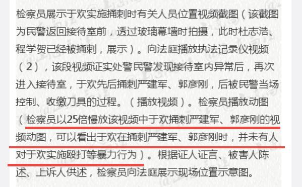 同时,一份来自派出所警察执法记录仪的视频也显示,于欢持刀捅了两名讨债者时,并没有遭到他人的殴打。