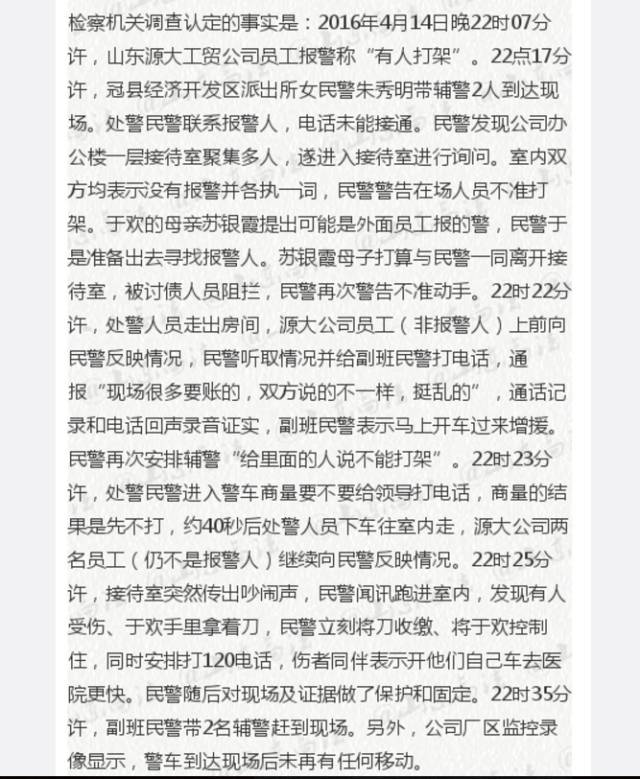 此外,检方也通过当晚民警的执法记录仪等证据认定,警方案发当晚并不存在玩忽职守的情况,也不存在丢下于欢母子不管的情况,但对现场的处置存在“不规范”的问题,比如没有分开当时双方。