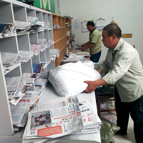 10点半左右,路云海带着记者来到投递室。投递室里的3个格子柜占据了大半空间。路云海说,格子柜代表着不同路段的订阅户,分拣邮件就是要根据每段的订阅户登记的报刊种类和数量进行查分,放在这些不同的格子里,并对信函加盖“落地日戳”。分拣邮件是一项考验人的耐心和细心的工作,从点数到放的位置都不能出错,否则就会送错报刊甚至延误。“新同事要在每个格子下面贴上不同路段的标签,防止放错,我们这些老投递员早就记得滚瓜烂熟了,打眼一看就清楚。”