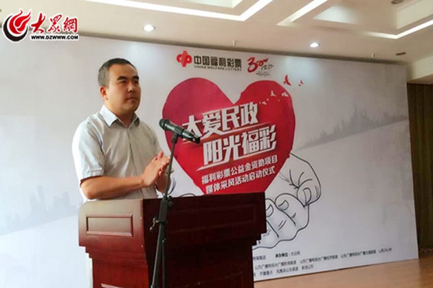 王庆林在致辞中说,2017年,中国福利彩票步入了而立之年。30年来,福利彩票逐步发展壮大,取得了骄人的成绩。截至今年5月底,山东已累计销售福利彩票1363亿元,筹集公益金404亿元,广泛用于资助社会福利和公益事业,如儿童福利院、养老公寓、城乡低保和优抚对象医疗救助、困难家庭大学新生救助、爱心助残等。为实现省民政厅提出的建设“现代大爱民政”的总体目标和“走前列、争一流、创品牌”的工作要求,在“十三五”期间树立福彩更加良好的公益品牌形象,省福彩中心与省互联网传媒集团共同策划组织了此次媒体采风活动,从而向广大社会公众充分展现广大彩民朋友的爱心善举和福利彩票为社会福利和公益事业作出的巨大贡献,以及山东福彩人三十年来艰苦奋斗的卓越成果和“取之于民,用之于民”的大爱情怀,让大家对福利彩票有更加全面的了解,进一步提升山东福彩的公益品牌形象。