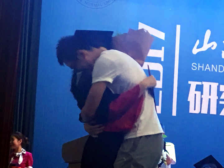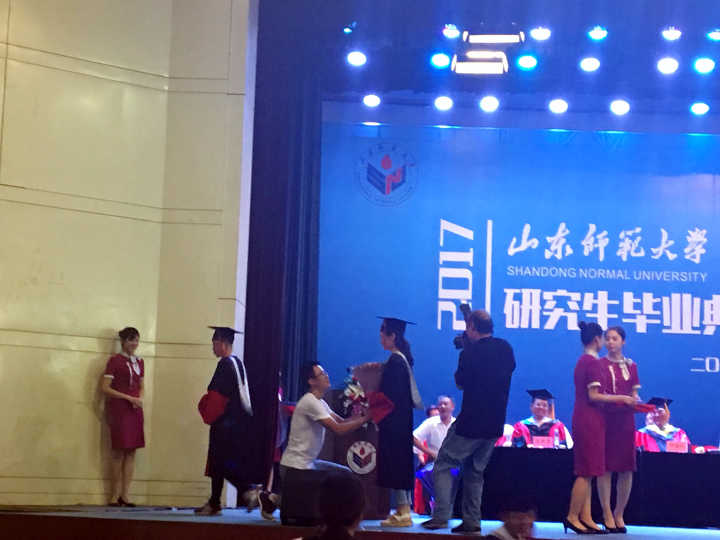 大众网济南6月27日讯 27日,山东师范大学2017研究生毕业典礼暨学位授予仪式在山东师范大学千佛山校区举行,1890名博士、硕士参加了学位授予仪式。典礼现场,一位女博士刚被授予博士学位,一男子冲上台,手捧鲜花单膝跪地,向女博士现场求婚。