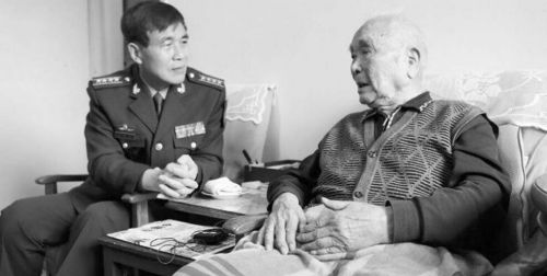 孙干卿的耳朵打仗时被震坏了, 需要近身说话才能听到。 (资料片)