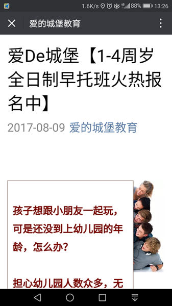 通过其微信公众号记者了解到,最早在今年5月12日,就已经正式向外公布1—4周岁全日制早托班报名招生。从其公布的信息中心对方称该机构源自于台湾,是青岛首家1—4岁全日制成长机构,主要进行全日托管和早期教育。此外,今年7月27日,该公众号上还公布了“暑假&常年【幼小衔接】12人小班制”的报名招生,在7月31日至8月25日进行暑期班1个月的招生。