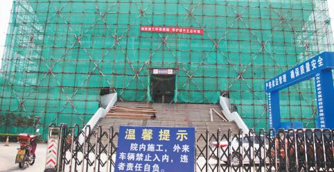 8月22日中午,记者看到,位于和平路与西五路路口的淄博市体育馆正处于整体装修及改扩建之中,原来场馆的外墙扎起了脚手架。