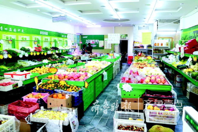 天桥区一家生鲜店内商品摆放整齐,方便了周边市民。