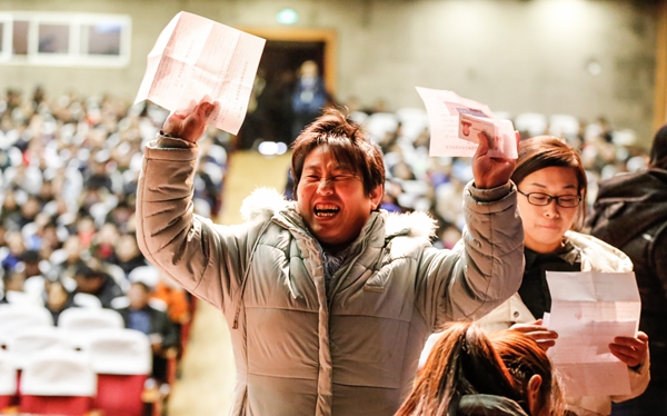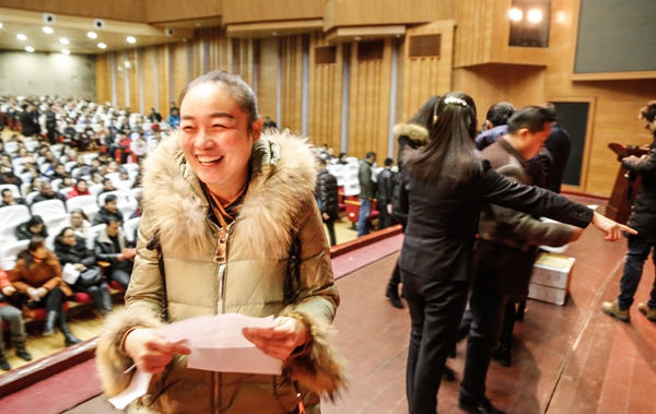 顺利抓到房子的市民非常开心。记者 李岩松 摄