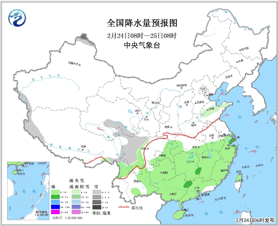 据中央气象台预报,24日8时至25日8时,山东北部等地有小到中雪或雨夹雪。华北南部、黄淮、江汉东部、江淮北部等地及环渤海地区有4~6级风。黄海中部、东海北部等海域将有5~7级、阵风8级的东北风。