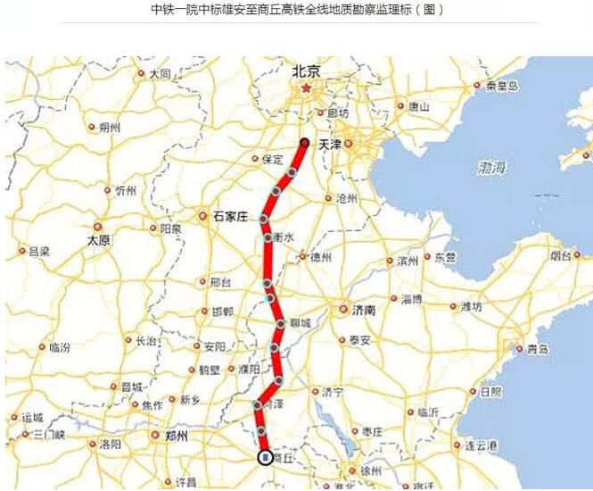 过境山东又将多一条高铁。记者注意到,中铁第一勘察设计院近日在官网公布了一则信息,该集团中标了雄安至商丘高铁全线地质勘察监理,并在正文下方附带了一张地图,根据图片显示的信息,这条高铁将过境山东聊城及菏泽,今后鲁西南地区北上可不必再绕行京沪高铁了,未来鲁西南可直通雄安到达北京了。中铁第一勘察设计院官网公布的消息显示,中铁一院中标雄安至商丘高铁全线地质勘察监理标,根据中标信息,雄安至商丘高铁正线线路全长540.684公里,设计时速350公里,该线路是连接雄安新区和商合杭高铁的南下通道,备受各方关注。