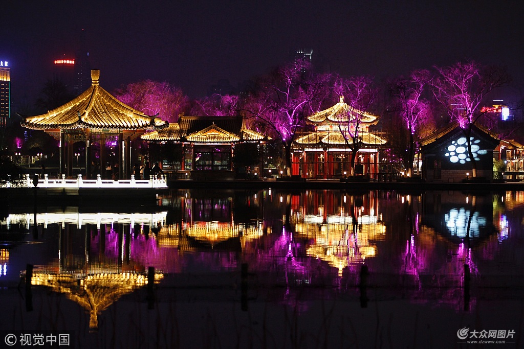 2018年2月1日,济南,备受瞩目的“一湖一环”景观照明项目经过前期的灯具效果调整和光影颜色亮度调试,已基本具备运行条件,当晚进入试运行阶段。今后市民每晚都可步行或乘船沿途观赏如梦如幻、如诗如画的灯光美景了。