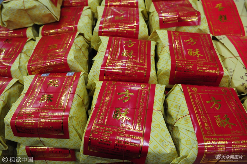 2018年1月31日,山东聊城,油纸包装的传统点心。